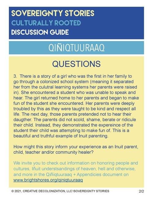 This story (song) includes references to many culturally important elements such as traditional spirituality, using the power of imagination*, and unity. Sovereignty Stories productions are appropriate for all-ages.
